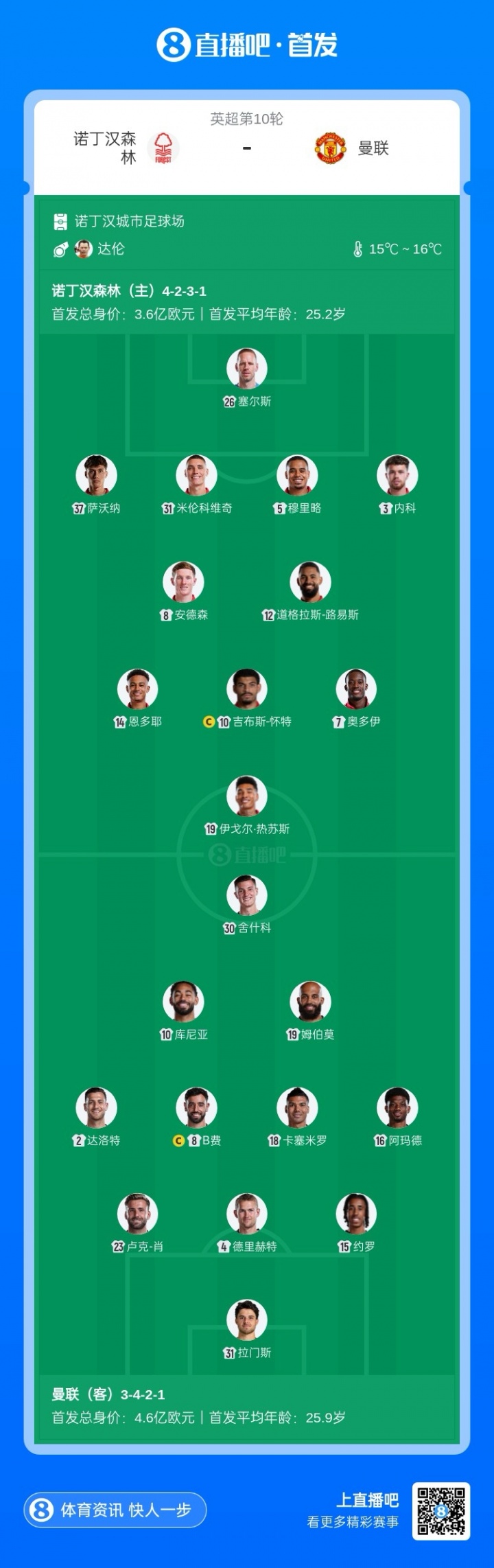 此前曼联迎来英超3连胜,苏超直播在线观看9轮16分位居英超第6;诺丁汉森林近4轮全败,5分排第18位列降级区。