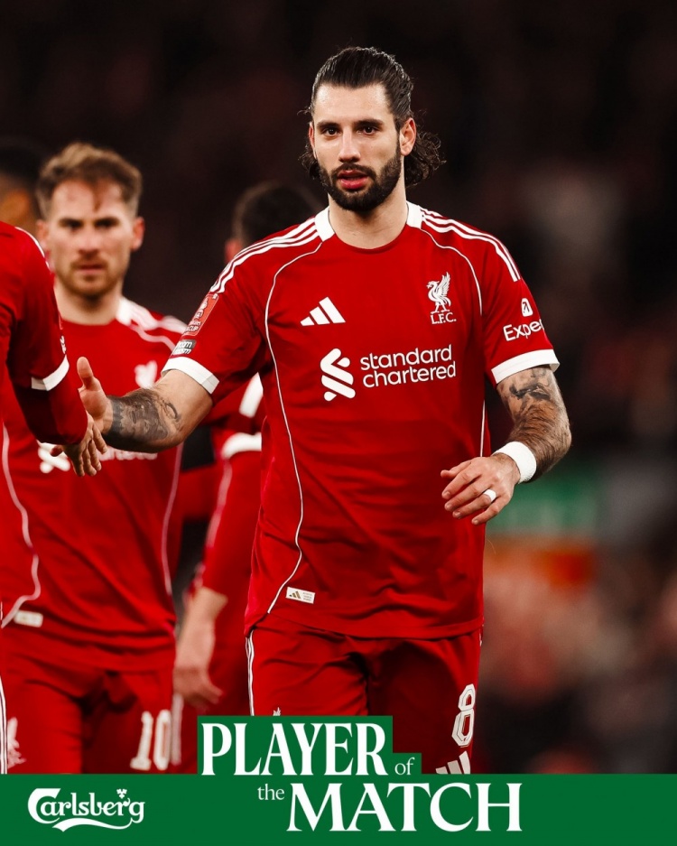 远射破门!索博斯洛伊当选足总杯第三轮利物浦队内最佳球员