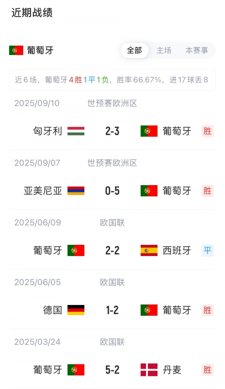 葡萄牙杆位:1-迪奥戈·科斯塔、3-鲁本·迪亚斯、5-达洛特、7-C罗、8-B费、10-B席、14-伊纳西奥、18-内托、19-努诺·门德斯、21-鲁本·内维斯、23-维蒂尼亚