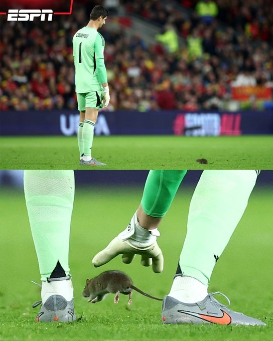 防得了得分 防不住鼠鼠!一老鼠闯入运动活动 场 ,库尔图瓦想抓住但未得手